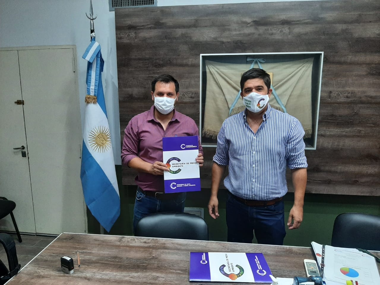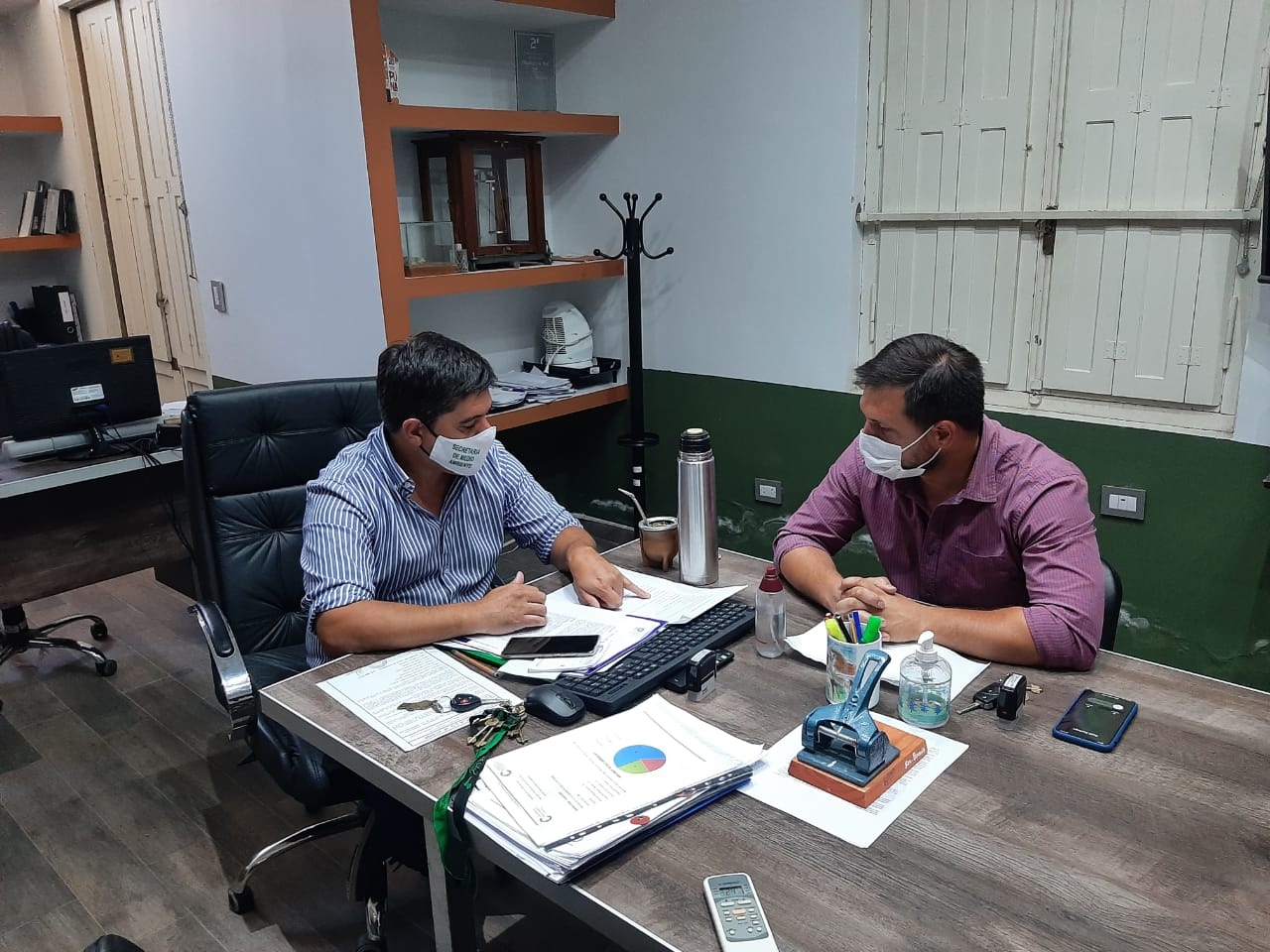 De la reunión participaron el secretario de Medio Ambiente, Emanuel Soberón, y el intendente de Paclín, Eduardo Menecier, a quien se dará en forma de comodato las cabañas que se encuentran en el dique Sumampa para reactivar el turismo.
