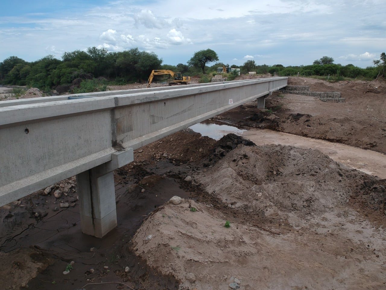 Paralelamente se construyeron protecciones de pilas con muros de gaviones. Las defensas se realizaron en ambos estribos tanto norte como sur al igual que las colchonetas. A la fecha, solo resta el despeje del cauce del río aguas arriba del cruce, para finalizar con esta obra tan esperada por la comunidad de productores de la zona.