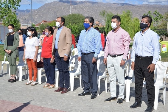 Acompañaron el acto, organizado por la Esc. Municipal N°1 en conjunto con la dirección de Educación municipal, el intendente de Santa María, Juan Pablo Sánchez; el director de Educación, Walter Parra; la directora de Nivel Inicial Escuela Municipal N°1, María Isabel Ramos; la secretaria de Coodinacion de Gabinete, Mariel Acosta; el director de Nivel Secundario, Armando Ruiz; el director de Relaciones Institucionales, Jorge Cardozo; la Asesora Legal del municipio, Marcela Moya; el Jefe de Personal, Sergio López; miembros de la Gendarmería Nacional, Gabriel Sequeira y Saúl Lencina; alumnos, padres y comunidad en general quienes se acercaron a Plaza de Las Américas, donde se desarrolló el sencillo acto.