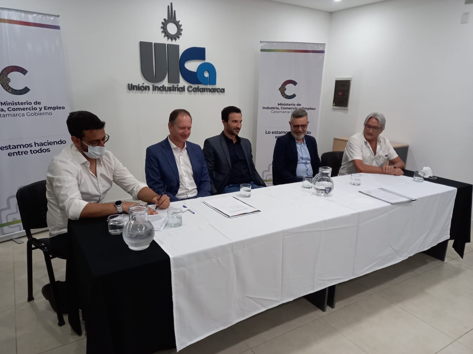 Luego de la inauguración de las plantas en El Pantanillo, en la sede de la Unión Industrial de Catamarca (UICa) se realiza la firma de dos convenios por parte del Ministerio de Industria, Comercio y Empleo con las empresas Telecom Argentina y Aguas de Catamarca SAPEM, para la concreción de obras de vital importancia realizadas en el marco del mejoramiento del parque industrial que ya cuenta con una primera etapa de obras ya concretadas.