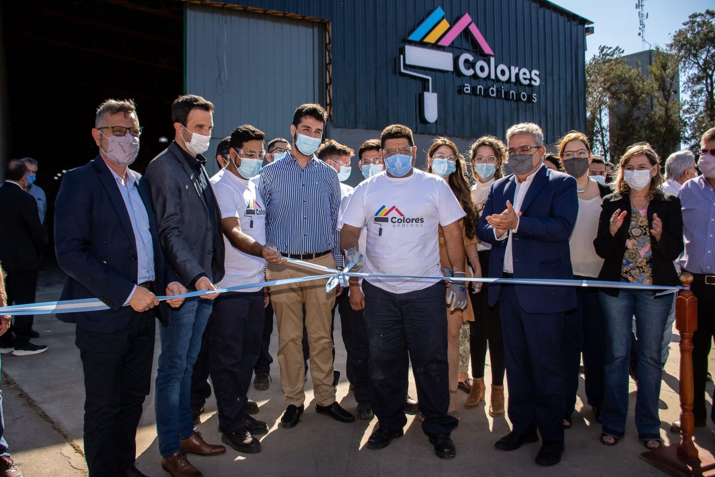 Antes del acto, las autoridades se hicieron presente primero en la planta de Colores Andinos, cuyos propietarios, de origen riojano, hicieron una inversión cercana a los 200 mil dólares, para instalar una fábrica de pinturas sintéticas de base látex y acuosas.