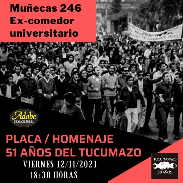 La cita es el viernes 12 a las 18:30 horas en el lugar emblemático, donde funcionaba el comedor universitario, en Muñecas 246, frente a la Escuela Normal en la ciudad de Tucumán, donde se colocará una placa en memoria de toda la juventud de los '70 y su lucha heroica.