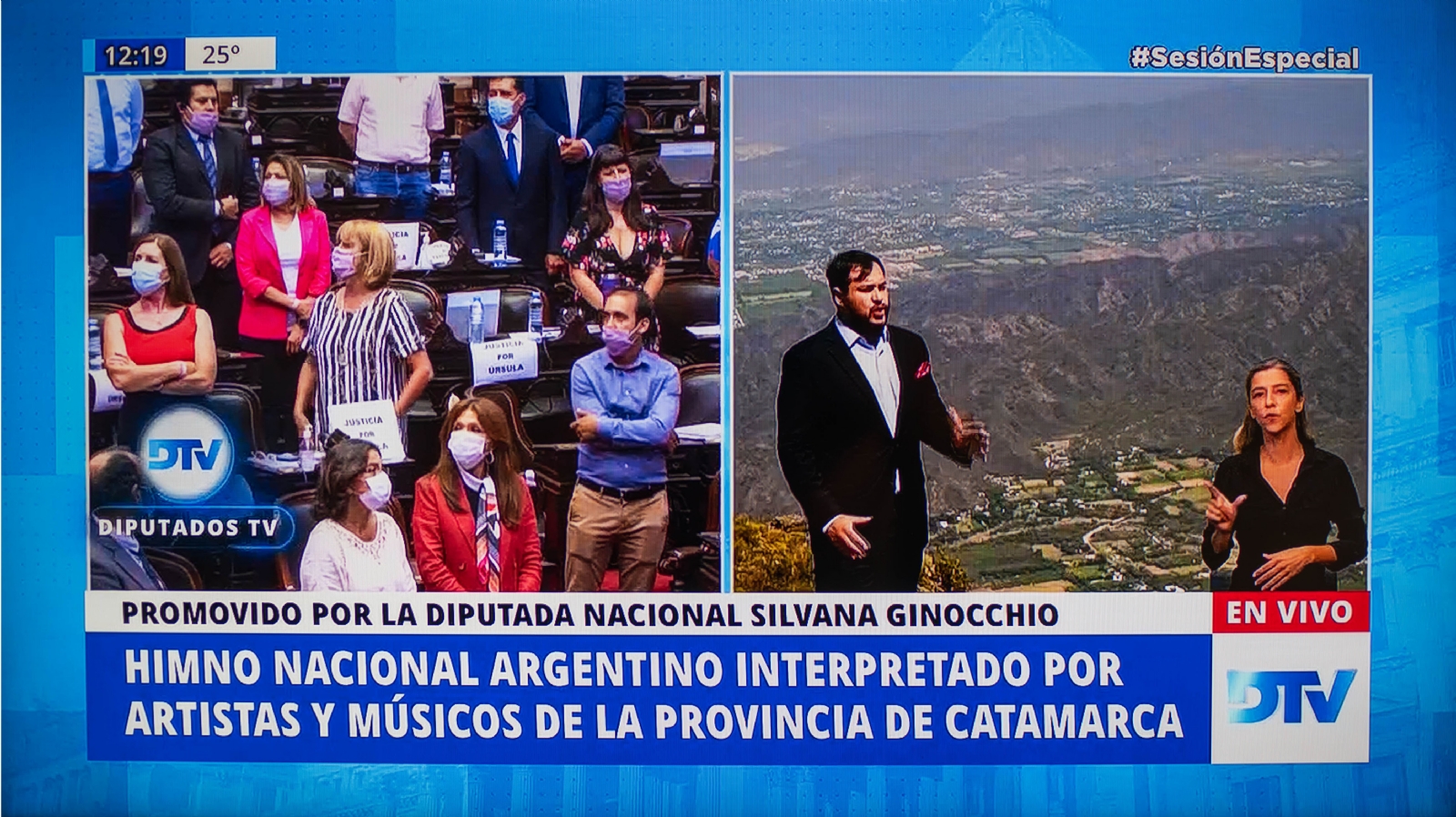 La presentación, y también la inédita versión del Himno Nacional, fueron gestionadas por la diputada Silvana Ginocchio (Bloque FdT). Imagen y sonido se combinaron para mostrar la provincia en un marco de respeto y circunspección.