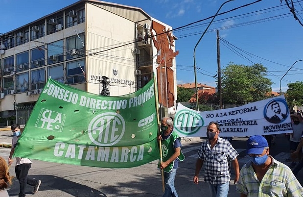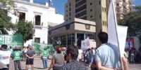Los representantes de los gremios díscolos marcharon por las calles de la ciudad hasta llegar a la Plaza 25 de Mayo, donde manifestaron expresiones en contra del Gobierno provincial por no acceder a una negociación por un aumento salarial acorde a la realidad inflacionaria.