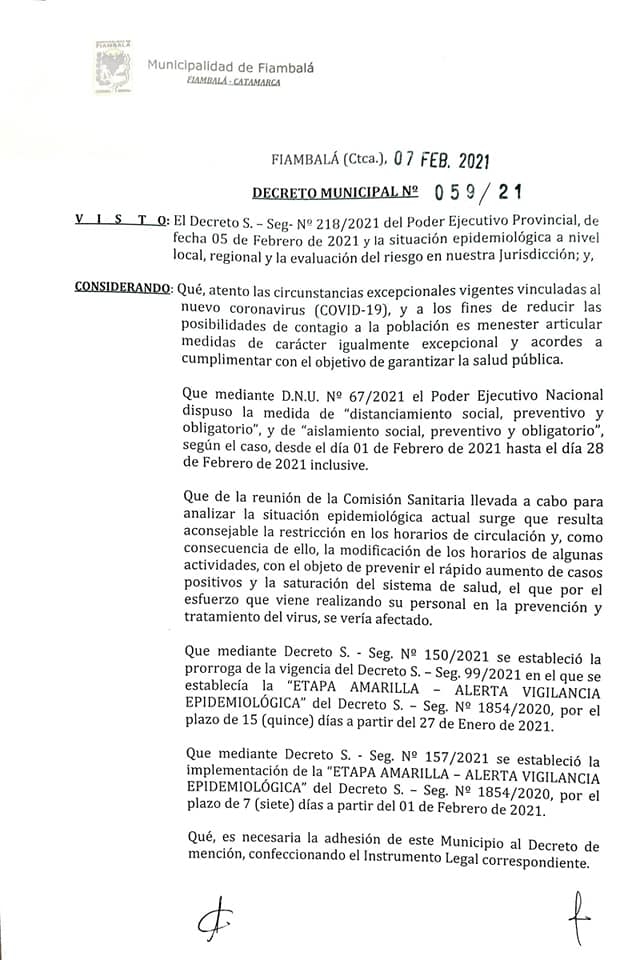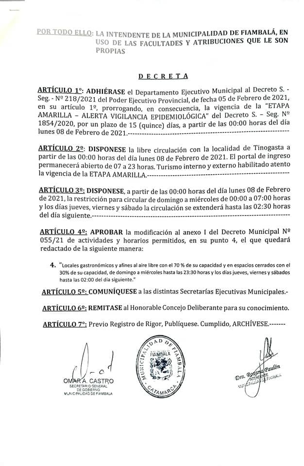 - Disponiéndose la libre circulación con la localidad de Tinogasta a partir de las 00 horas del día 8 de febrero.