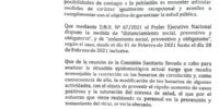 - A partir de las 00 horas del día lunes 8 de febrero de 2021 se restringe el horario de circulación de domingo a miércoles de 00 a 7 horas y los días jueves, viernes y sábados la circulación se extenderá hasta las 2.30 horas.