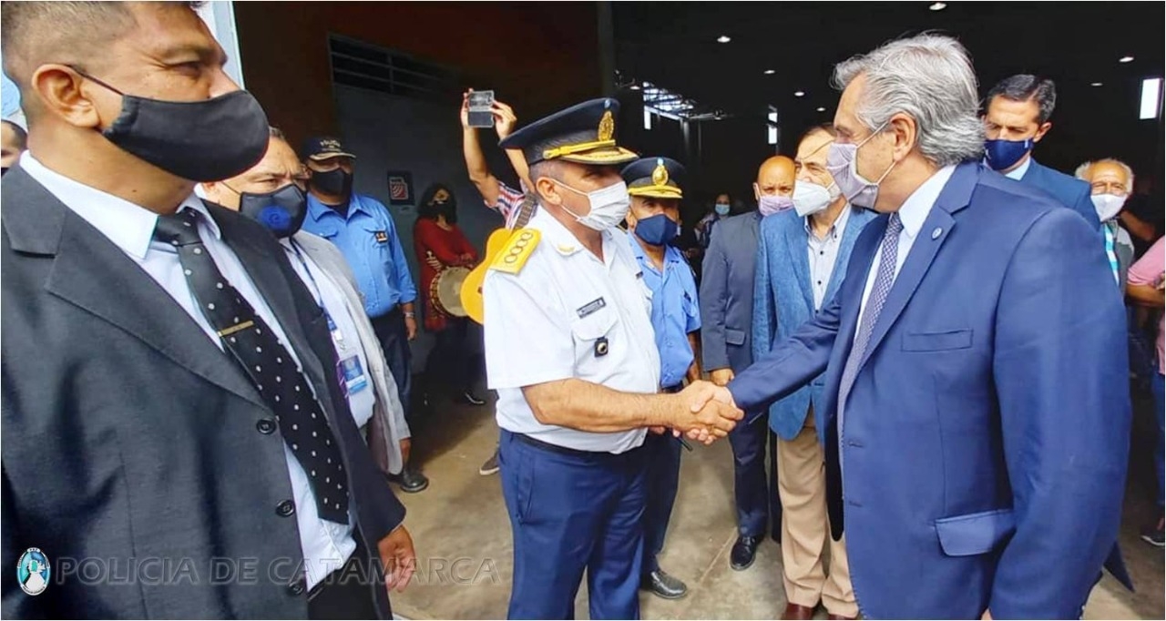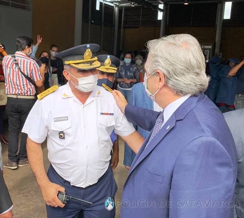 También, transmitieron al personal policial el saludo del gobernador de la provincia, Raúl Jalil, como el reconocimiento de las máximas autoridades responsables de la seguridad presidencial.