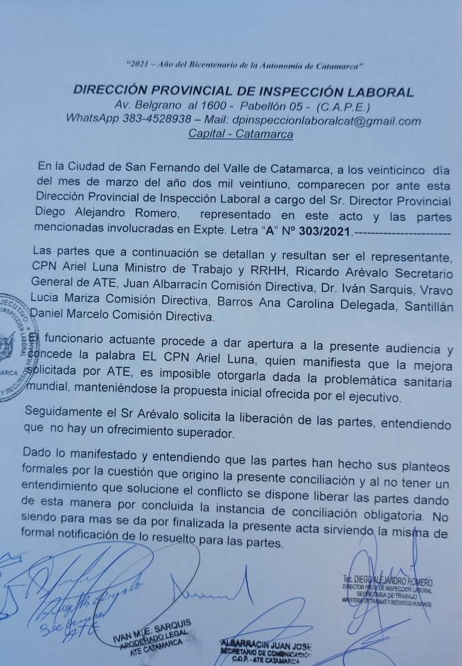 Finalizó el periodo de conciliación obligatoria entre el gremio ATE y el Gobierno provincial, quienes se sentaron en varias jornadas para intentar llegar a un acuerdo en relación al aumento salarial.