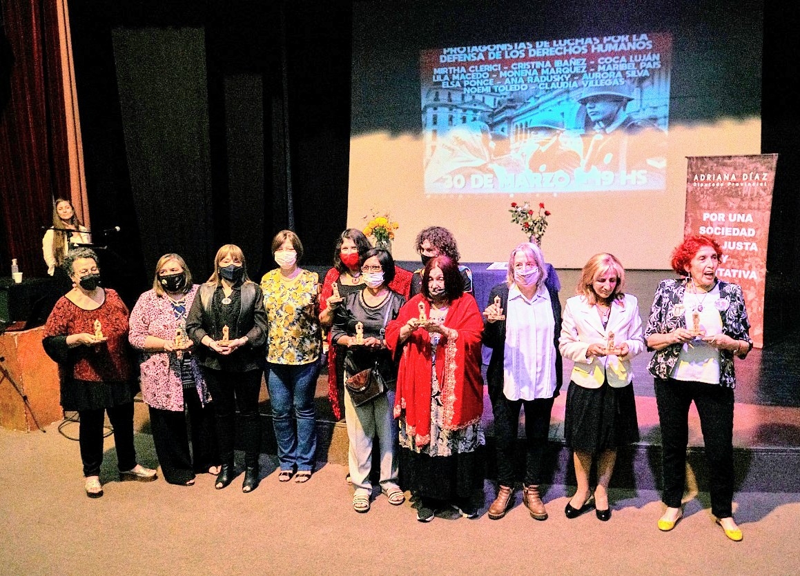 En el marco de las actividades programadas por el mes de la memoria, se concretó el lunes, en el complejo Urbano Girardi un emotivo acto organizado por la diputada Adriana Díaz (PI). Se trató de un encuentro en donde fueron reconocidas como protagonistas por la búsqueda de Memoria. Verdad y Justicia: Mirtha Argañaraz de Clerici, Cristina Ibáñez, Sara “Coca” Luján, Lila Macedo, Emperatriz “Monena” Márquez, Maribel Pais, Elsa Ponce, Ana Radusky, Aurora Silva, Noemí Toledo y Claudia Villegas.
