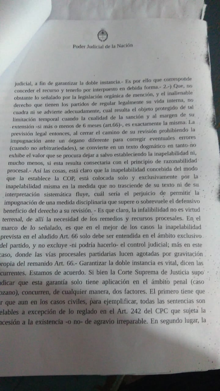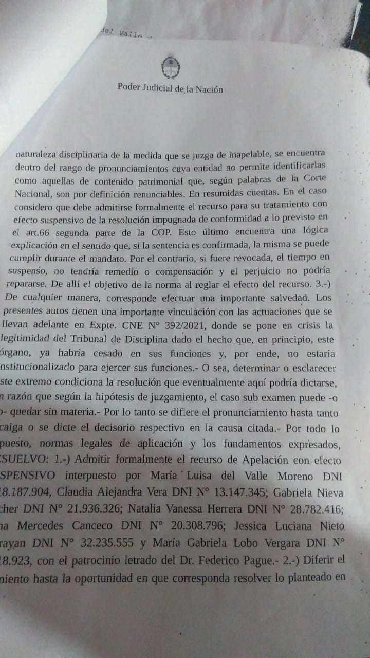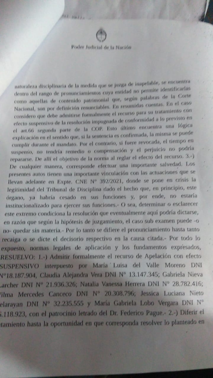 Nieto es una de las siete mujeres que meses atrás fueron injustamente sancionadas por pedir ficha limpia, desoyendo lo dispuesto por la Justicia Electoral que hizo lugar al Recurso de Apelación.