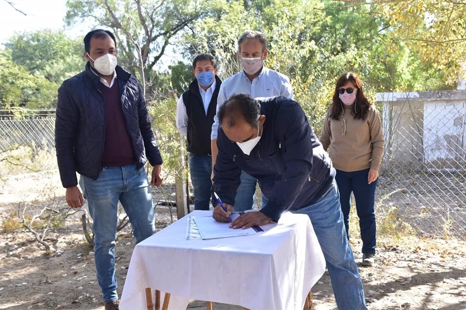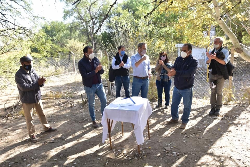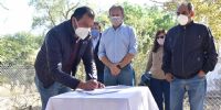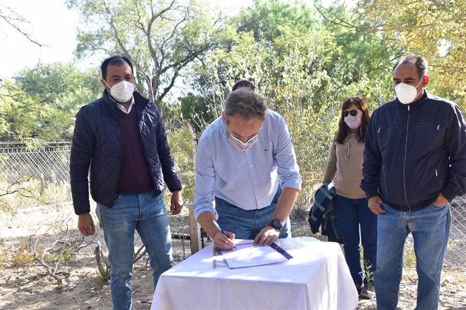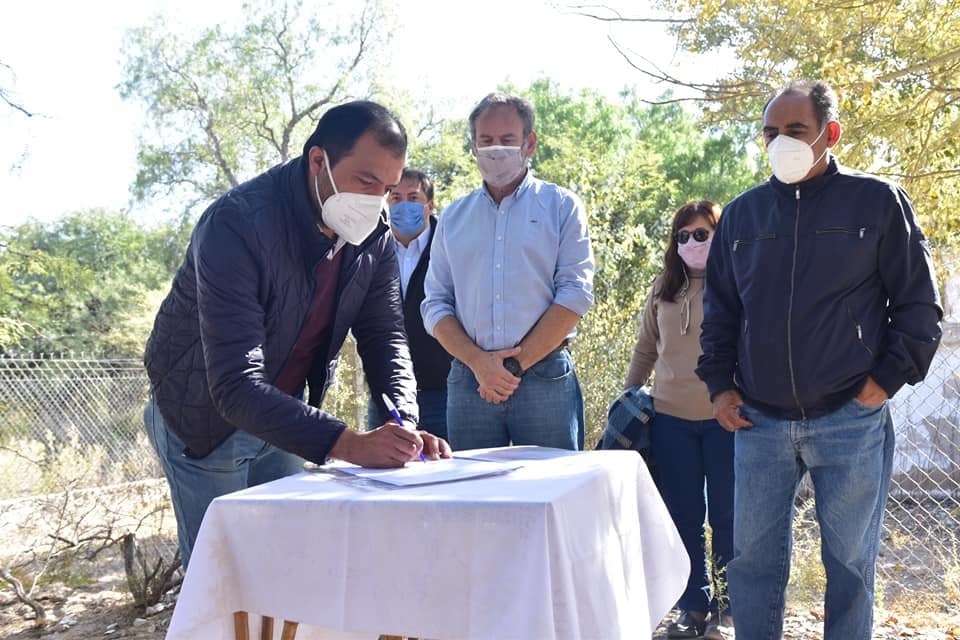 El intendente de Santa María, Juan Pablo Sánchez, acompañado por el ministro de Agua, Energía y Medio Ambiente de la provincia, Alberto Kozicki, procedieron a la firma del acta de inicio de obra de la "Planta Depuradora de Efluentes Cloacales Domiciliarios Santa María".