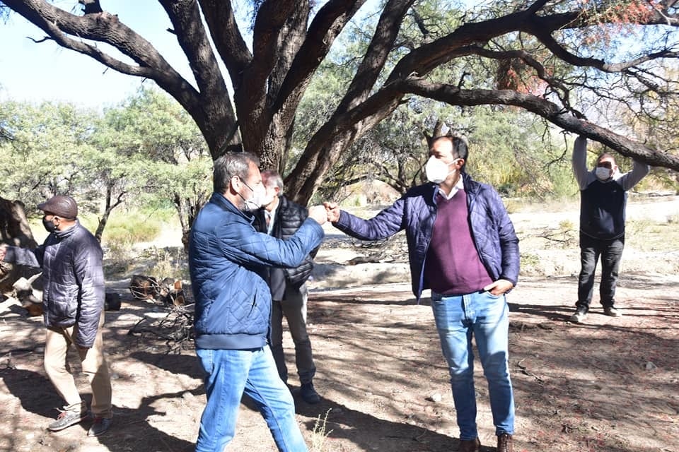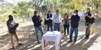 Acompañaron la Arq. Cristina Luna, quien estará a cargo de la supervisión de la obra; el jefe de la dependencia AySA, Luis Molina; el jefe de Recursos Hídricos, Nicolás Delgado y el representante técnico de la empresa adjudicataria, Arq. Mario de la Quintana. Allí, recorrieron el emplazamiento dónde se instalará la planta depuradora de efluentes cloacales domiciliarios y nexo colector de Santa María, en la zona de intersección de los ríos Seco y Santa María en el sector norte del barrio Santa Rosa.