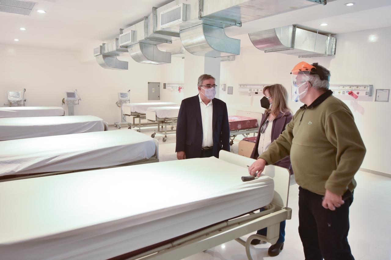 El mandatario y la ministra fueron recibidos por el director del hospital, Daniel Godoy, quien contó el trabajo realizado para poner en funcionamiento las 9 nuevas camas y cómo funcionarán en la atención de los pacientes. Además, el hospital monovalente recibió 3 respiradores, 10 bombas volumétricas y 6 bombas por jeringa para seguir reforzando el equipamiento de nosocomio.
