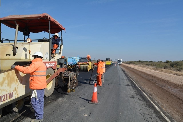 los bacheos de calzado, sellado de fisuras y colocación de microaglomerado de la ruta 40 hasta la municipalidad de San José de Santa María. Se trata de dos obras de mantenimiento general desde Las Cuevas hasta Pie de Médano y desde allí a Palo Seco.