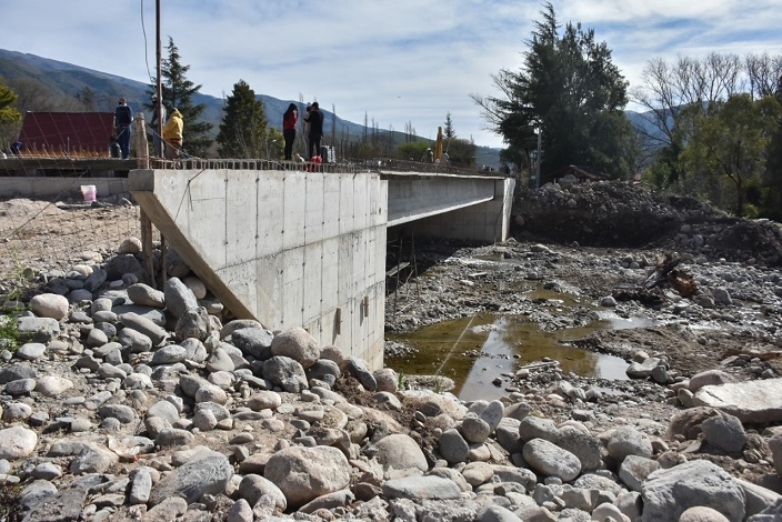 Tras esta visita, el gobernador Jalil supervisó el avance de la obra de construcción del nuevo puente sobre el río Ambato, en inmediaciones de la histórica hostería Villafañez.