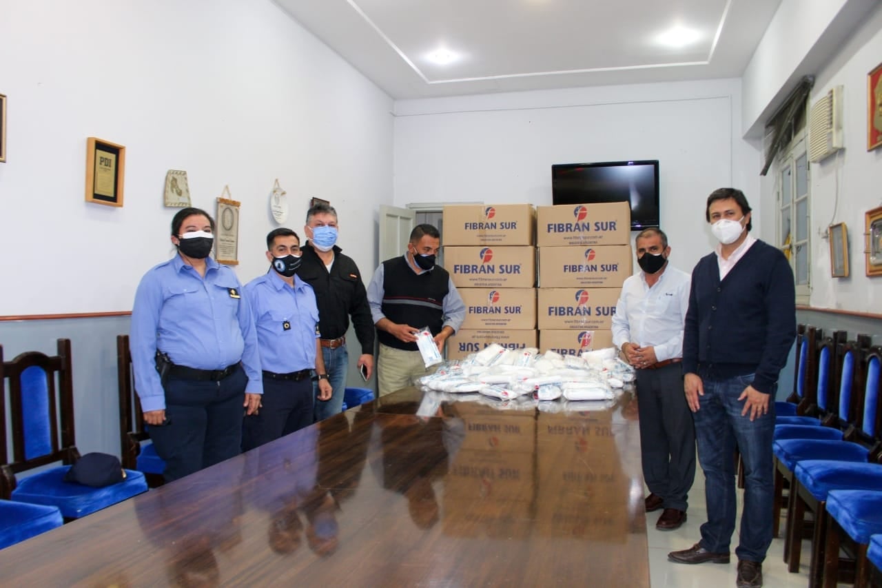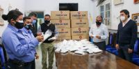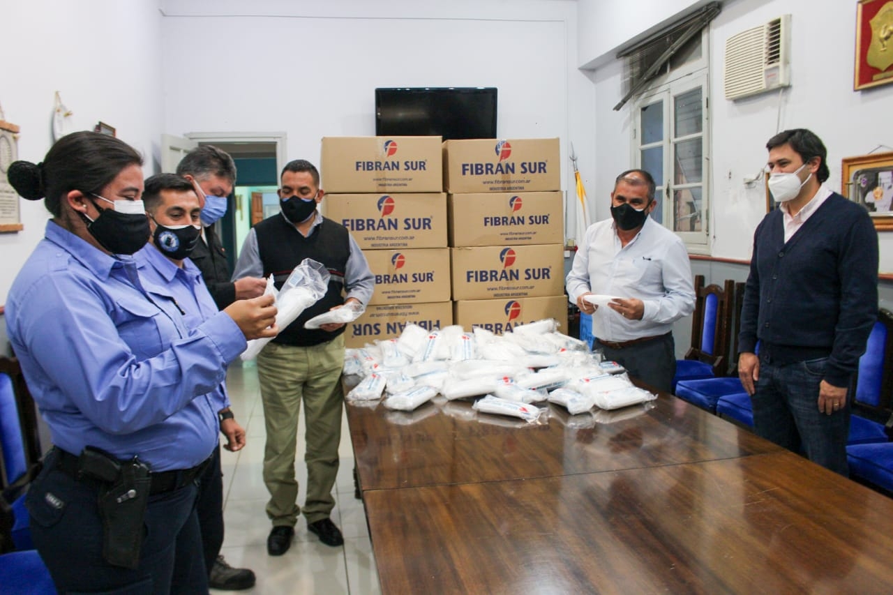 El ministro de Seguridad, Gustavo Aguirre, y el jefe de la Policía, Ángel Agüero, supervisaron la recepción de barbijos quirúrgicos que otorgó el Gobierno de la provincia, a través del ministerio de salud, que serán distribuidos a todos los miembros de la Policía y del Servicio Penitenciario, para que puedan disponer a razón de uno para cada día de trabajo.