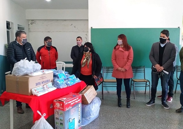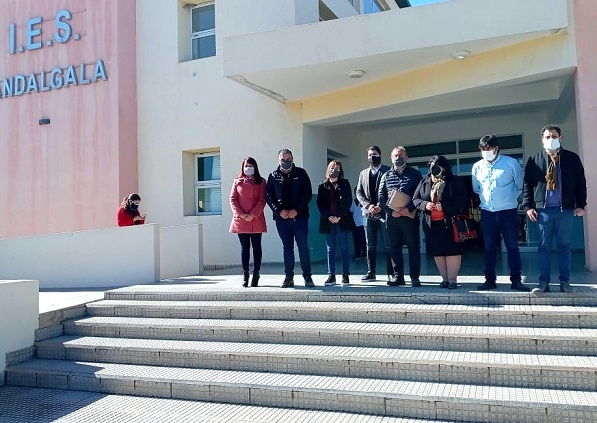 De inmediato la comitiva se trasladó a la sede del IES, donde fueron recibidos por la rectora Sandra Haddad, y obsequió elementos de protección personal para que los alumnos que cursan la tecnicatura en enfermería puedan completar sus prácticas en el Hospital y así recibir su título. Mientras recorría las instalaciones de la casa de altos estudios, el Ministro Moreno anunció que por decisión del gobernador Raú. Jalil se reiniciarán los trabajos en un ala contigua de la construcción, a la que resta techar.