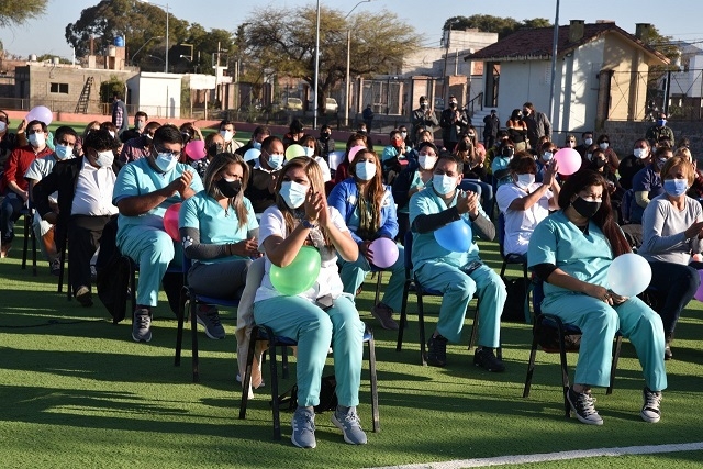 Este reconocimiento al personal de salud, surge luego de valorar el esfuerzo realizado durante más de un año y medio durante la pandemia del Covid19, donde los trabajadores de las áreas específicas mostraron una dedicación ejemplar para contener la situación de la mejor manera posible, y brindaron su atención con gran profesionalismo y calidad humana; tal como reconocieron todos los vecinos que se acercaron a los centros de atención, a los nodos de testeo y de vacunación, como aquellos que –sin salir de sus hogares- recibieron la visita domiciliaria de los profesionales.