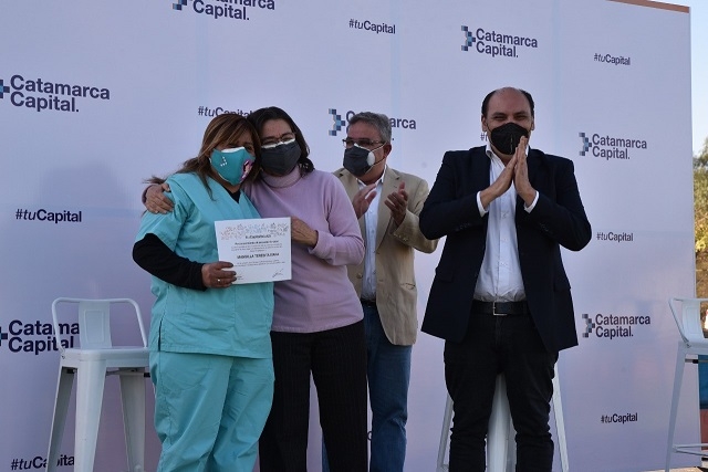 “Pero también pensaba, porque a todos nos pasaba cuando íbamos a realizar alguna labor, que nos preocupaba volver al hogar y contagiar a nuestros seres queridos, y no me quiero imaginar lo que pasaban ustedes y sus familias, estando tan expuestos al contagio. Pero hoy quiero decirles que van a llegar a sus casas, no con esa preocupación, sino con una buena noticia: a partir de agosto todos los trabajadores del área de Salud que sean beneficiados del Catamarca Ciudad Trabaja o contratados, pasan a planta permanente: es el mínimo reconocimiento que les podemos hacer, porque se lo merecen”, anunció ante un público que estalló de emoción.