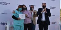 Junto al secretario de Desarrollo Humano, Alberto Natella y la subsecretaria de Salud municipal, Ana Fernanda Lagoria, la ministra de Salud, Claudia Palladino; quienes estuvieron acompañados por el gobernador Raúl Jalil, la diputada nacional Lucía Corpacci, legisladores provinciales, concejales, autoridades municipales e invitados especiales, se brindó el merecido reconocimiento a los trabajadores sanitarios en nombre de toda la comunidad.