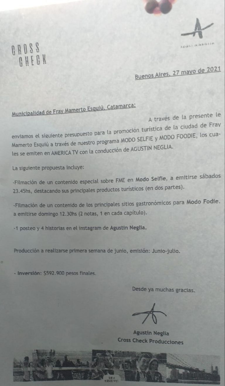 Según se presentó, fueron casi 600 mil pesos los que el municipio pagó para que Fray Mamerto Esquiú sea promocionado a través de la televisión y redes sociales.