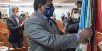 Presente en la sesión, el Senado hizo entrega del instrumento parlamentario al artesano Lagoria quien agradeció el gesto de los Legisladores resaltando el orgullo que significa estar en el Recinto y recibir dicha distinción.