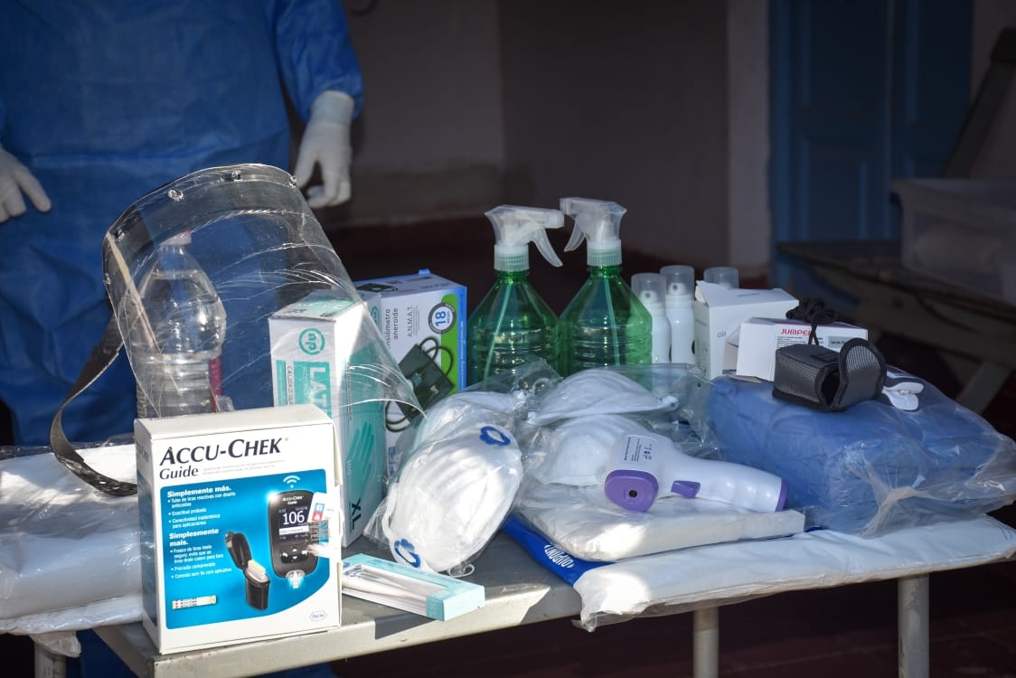 En la localidad de Salado, se hizo entrega de elementos de bioseguridad y remedios para el control de personas positivas de Covid-19; termómetros infrarrojos e insumos para el Hospital de Salado.