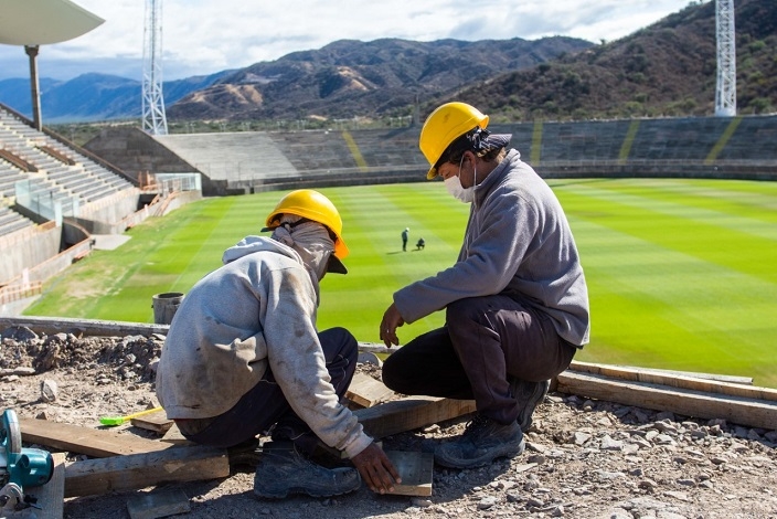 Actualmente se trabaja en las refacciones de la estructura interna y externa del estadio. En lo que respecta al trabajo realizado por personal de ministerio de infraestructura, el arquitecto Mariano Fuentes detalló que se trabajó en la cubierta del edificio del Estadio y en la bajada de los pluviales. “Hicimos en una parte una carpeta para darle un poco más de pendiente y estamos colocando todo lo que es membrana, también en la planta alta donde están los palcos”, explicó Fuentes.