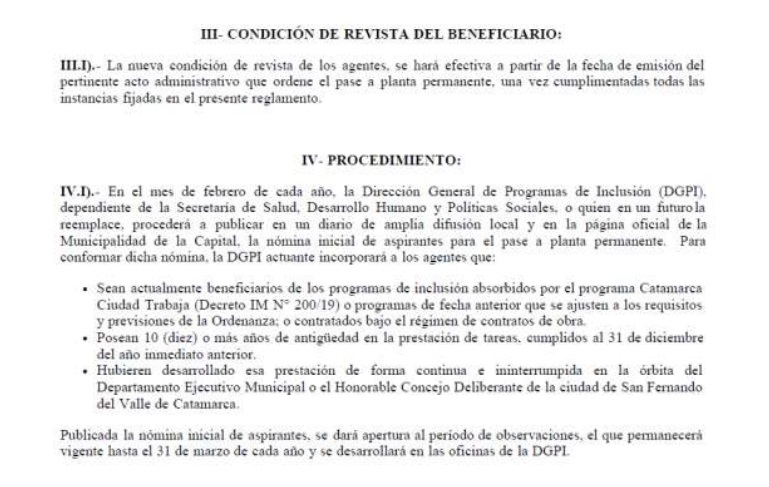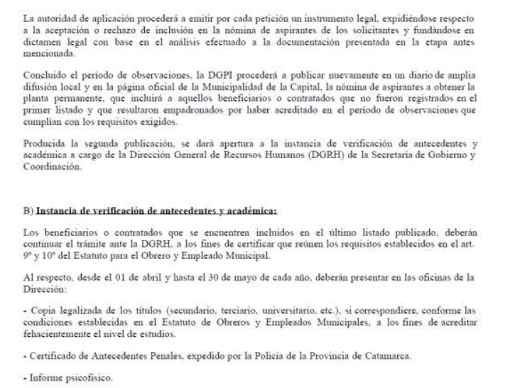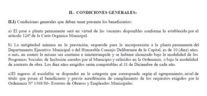 La Municipalida de la Capital publicó en el Boletín Oficial el procedimiento para el pase a planta permanente del personal contratado.