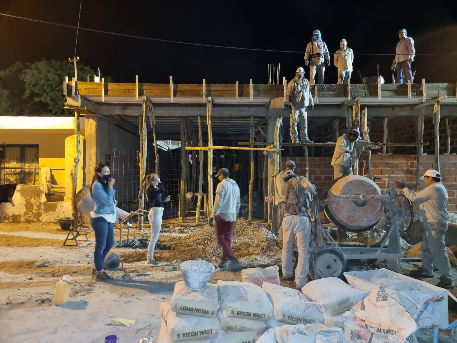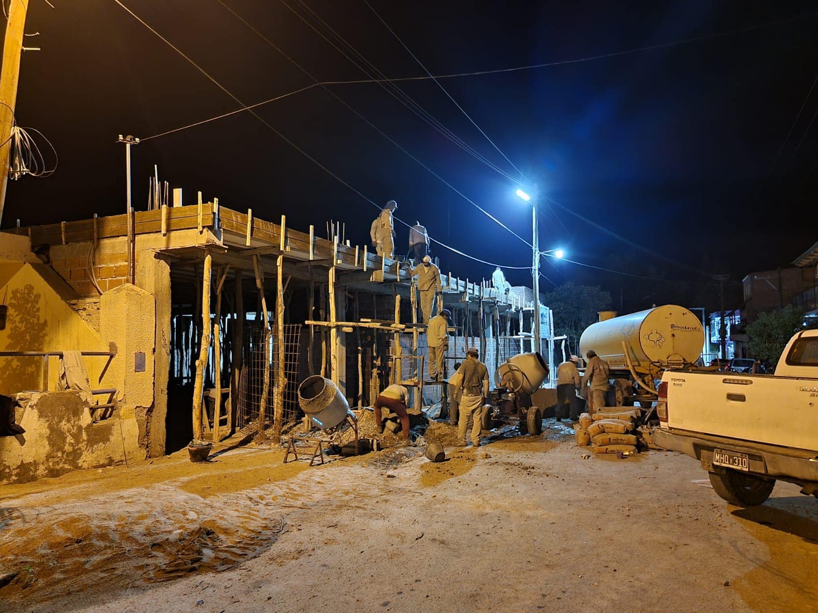 La Secretaría de Planificación, Coordinación y Control, encabezada por la Arq. Mariana Busse junto a equipo de trabajo y la cuadrilla de Sergio Moreno, realizaron un importante trabajo en equipo y completaron con mano de obra municipal, durante toda la noche con motivo de culminar la misma evitando las altas temperaturas, el llenado con hormigón del sector nuevo para así completar los 350m2 que comprenden salas de internación, laboratorio, enfermería, consultorios y guardia.