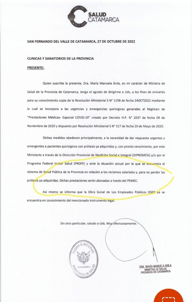OSEP, la obra social de los empleados públicos se encargará de pagar las cirugías a los privados, así les notificó el 27 de octubre la ministra de Salud de la provincia, Manuela Avila, a las Clínicas y Sanatorios.