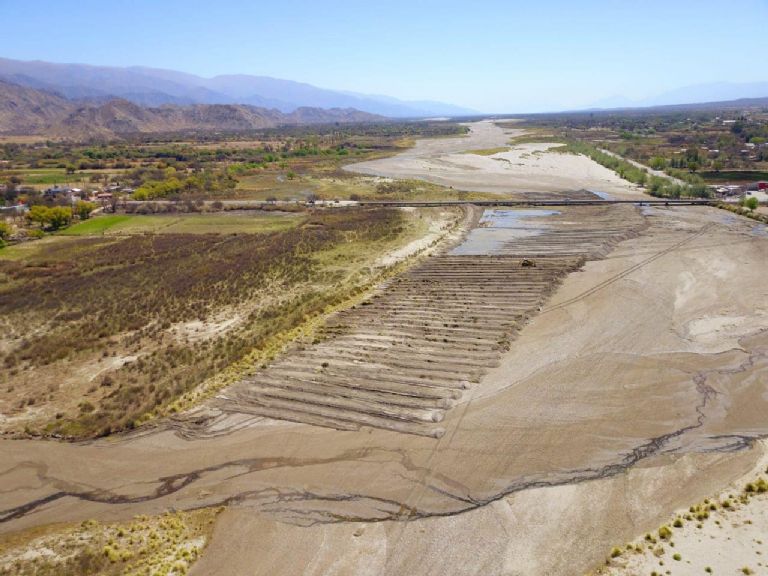 De esta manera, se está trabajando con la primera etapa planificada, de encauce del lecho con la apertura de un canal en el eje central y el retiro de los bancos de arena y sedimentos; construcción de 5 espigones engavionados, para cubrir el sector urbanizado y de Costanera; y el terraplenamiento desde aguas arribas hasta la altura de calle San Martín.