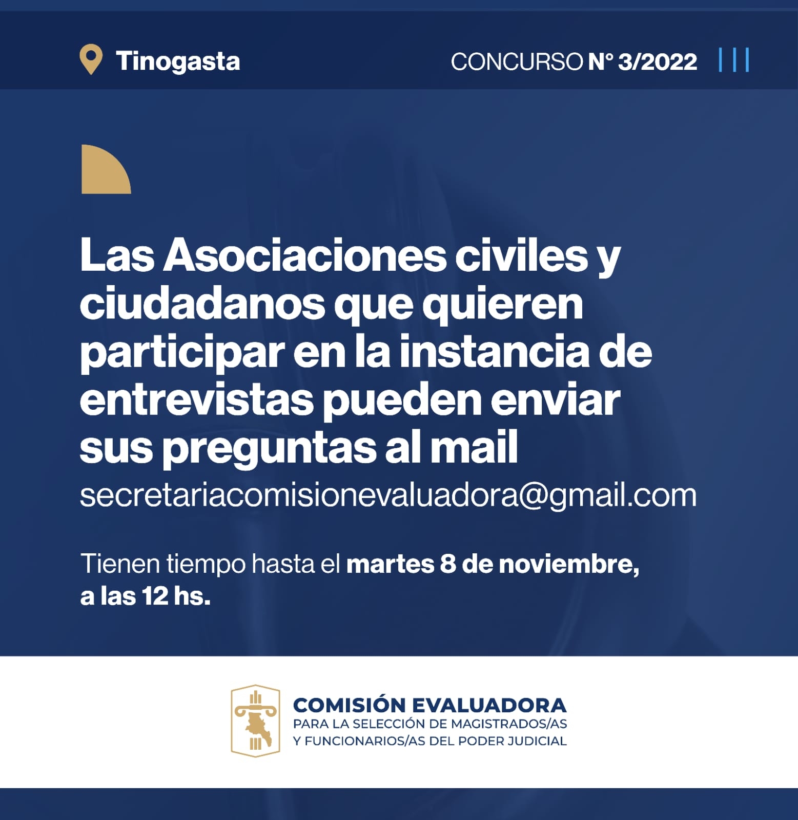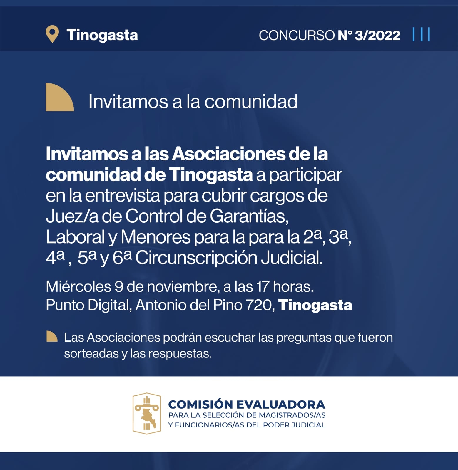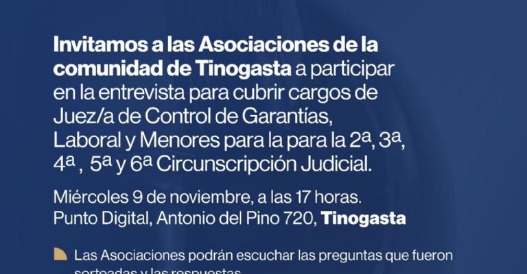 La entrevista se llevará cabo el miércoles 9 de noviembre del presente año en sede del Punto Digital en Antonio del Pino 720 en la ciudad de Tinogasta.