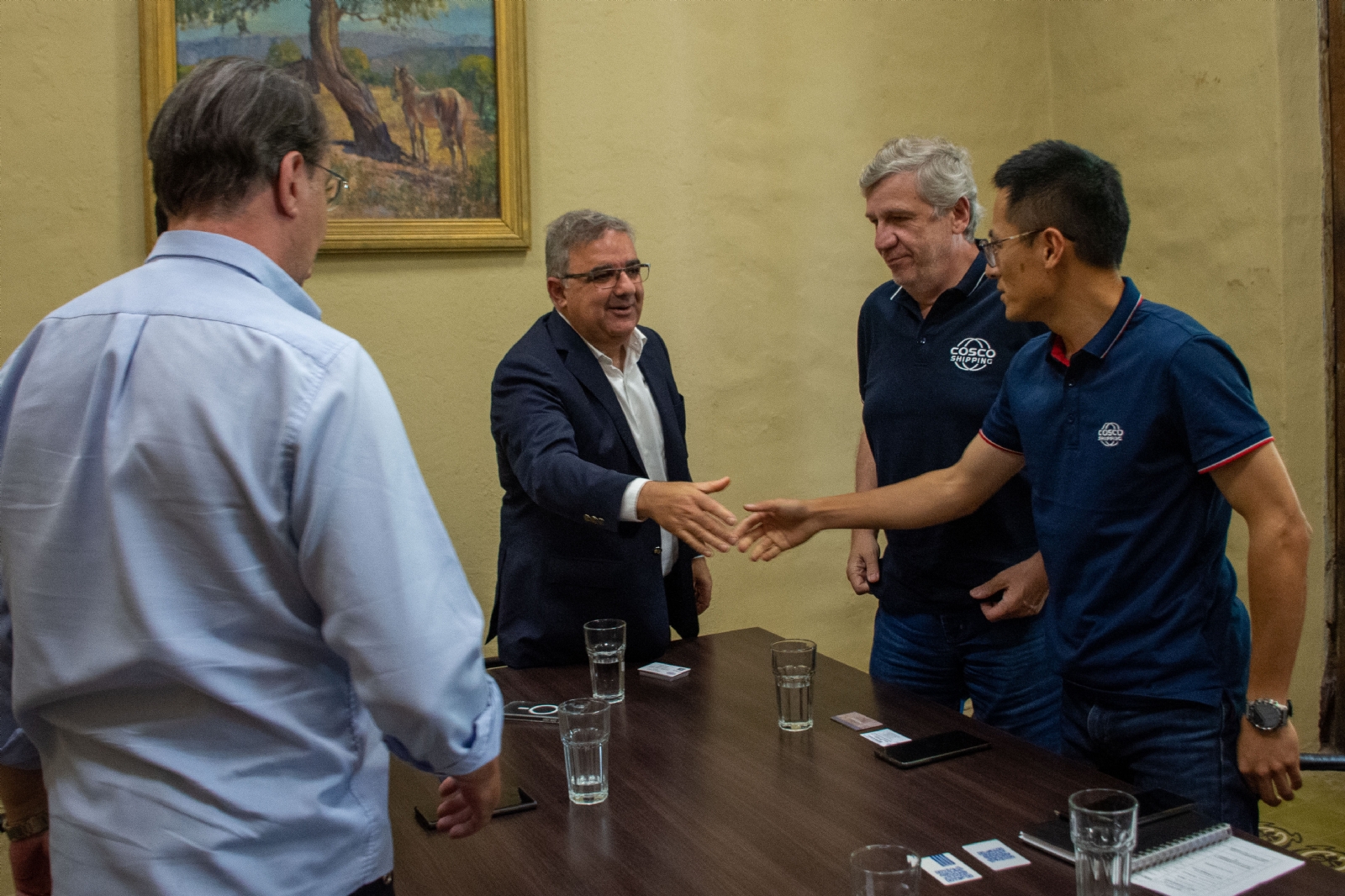 En el encuentro estuvieron presentes el gerente de marketing de Cosco Shipping, Lin Youbin; el gerente de Ventas, Marcelo Cardama; y el gerente de Operaciones, Daniel Santinelli.