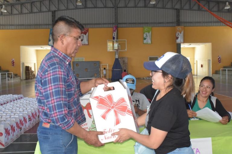 Por otro lado, la jefatura de Personal, a cargo del Sr. Sergio López, realizó la entrega de cajas navideñas a todo el personal becado, contratado y en planta permanente como cada año. La misma contiene 8 productos, entre los que se cuentan 1 botella de sidra y 1 de ananá fizz, 1 barra de postre de maní, 1 garrapiñada, 1 pan dulce, 1 turrón y 1 budín, de tal modo que todos los empleados municipales tengan asegurado el brindis en estas fiestas de fin de año.