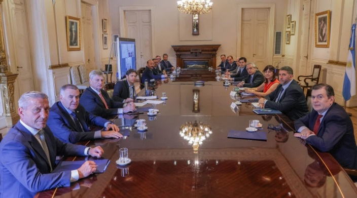 Alberto Fernández se reunió este mediodía con 14 gobernadores (10 en forma presencial y 4 conectados a través de una videoconferencia) para discutir y acordar una postura común respecto al fallo que ayer dio a conocer la Corte Suprema sobre el porcentaje de coparticipación que el gobierno nacional le quitó a la Ciudad de Buenos Aires.