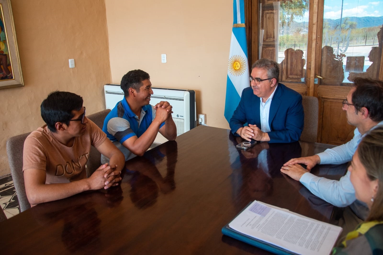 El gobernador Raúl Jalil, junto al ministro de Gobierno, Justicia y Derechos Humanos, Juan Cruz Miranda, recibieron hoy al Cacique de Antofalla, Ramos Isidro, y al delegado municipal Alfredo Reales, quienes agradecieron la conclusión de la obra de cloacas y el mandatario anunció la construcción de baños para la comunidad.