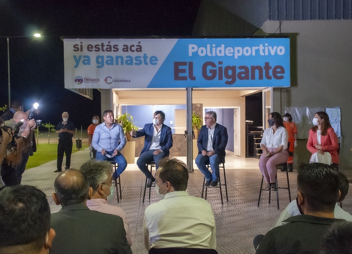 Al finalizar el acto, Corpacci acompañó al gobernador Jalil y al intendente Noblega al Parque Industrial de Tinogasta donde se lleva a cabo la vendimia, a los efectos de compartir con productores en esta reactivación vitícola, para luego participar de una emotiva inauguración del Polideportivo “EL GIGANTE”.
