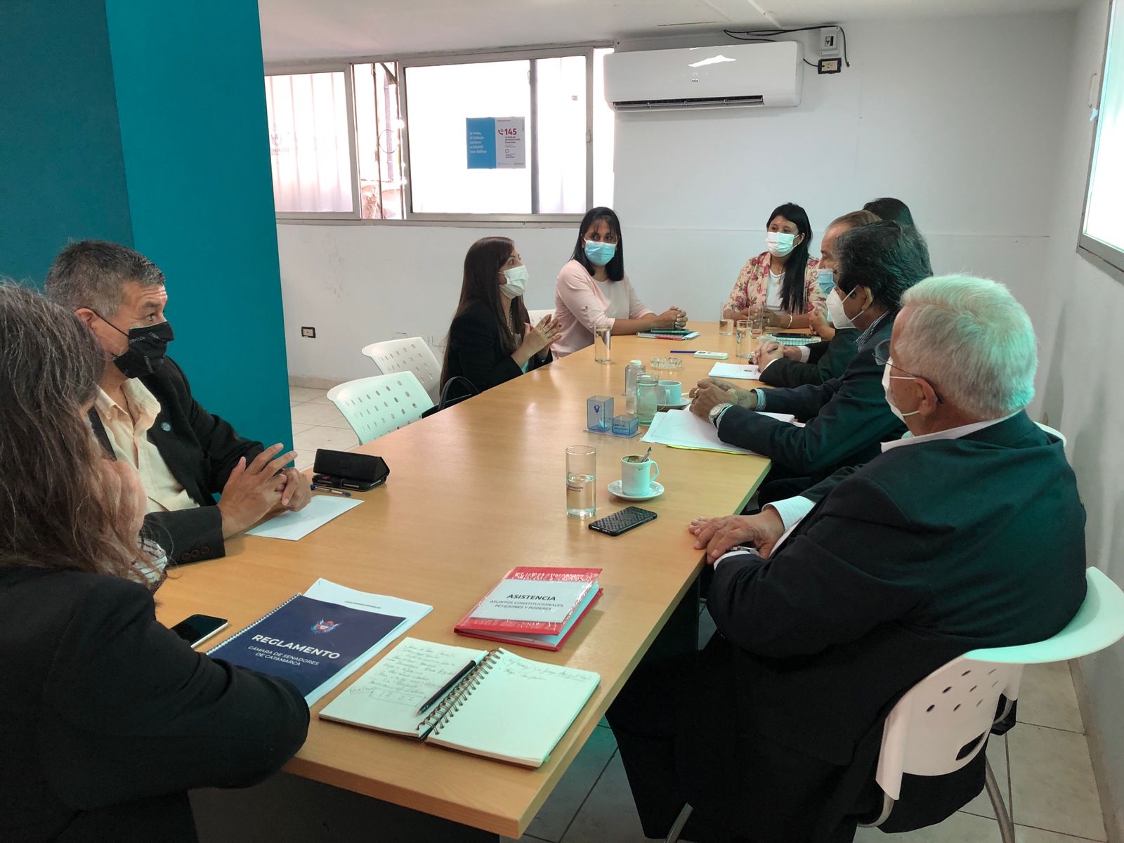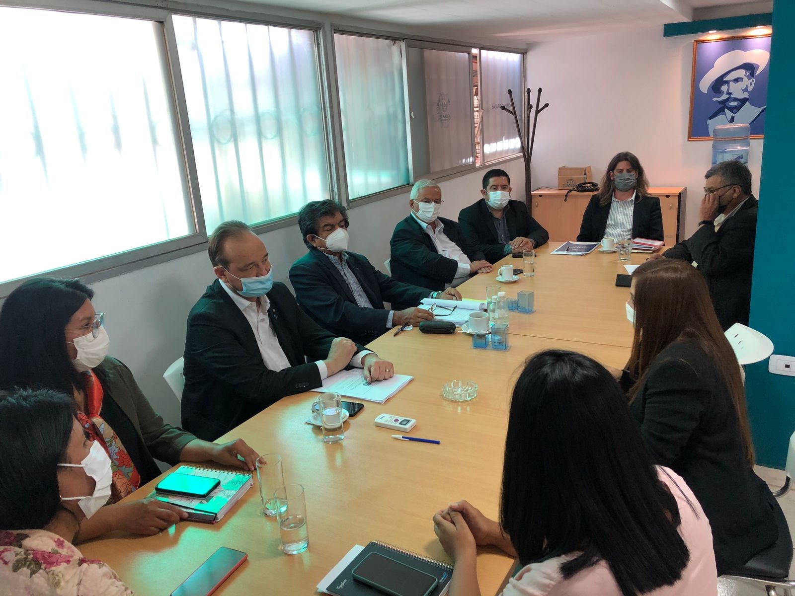 Durante la entrevista, estuvieron presentes, las y los senadores Gabriela Ybáñez, Érika Inga, Norma Reales, Edgardo Seco, Augusto Ojeda y José Pío Carletta, además del Secretario Parlamentario Franco Dré.