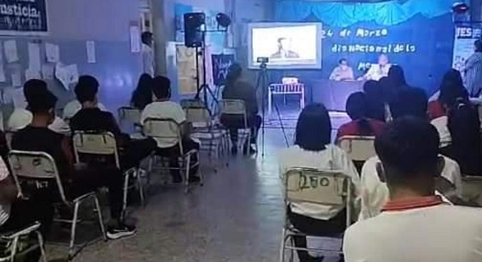 Luego del ingreso de la Bandera de Ceremonias, y los Himnos Argentino y Catamarca, el Rector del IES, Prof. Walter Soria, dio la bienvenida a los presentes e invitó al Prof. Roque Morales, encargado de la Disertación sobre "Memoria Activa: secuestrados, torturados y desaparecidos del Departamento La Paz".