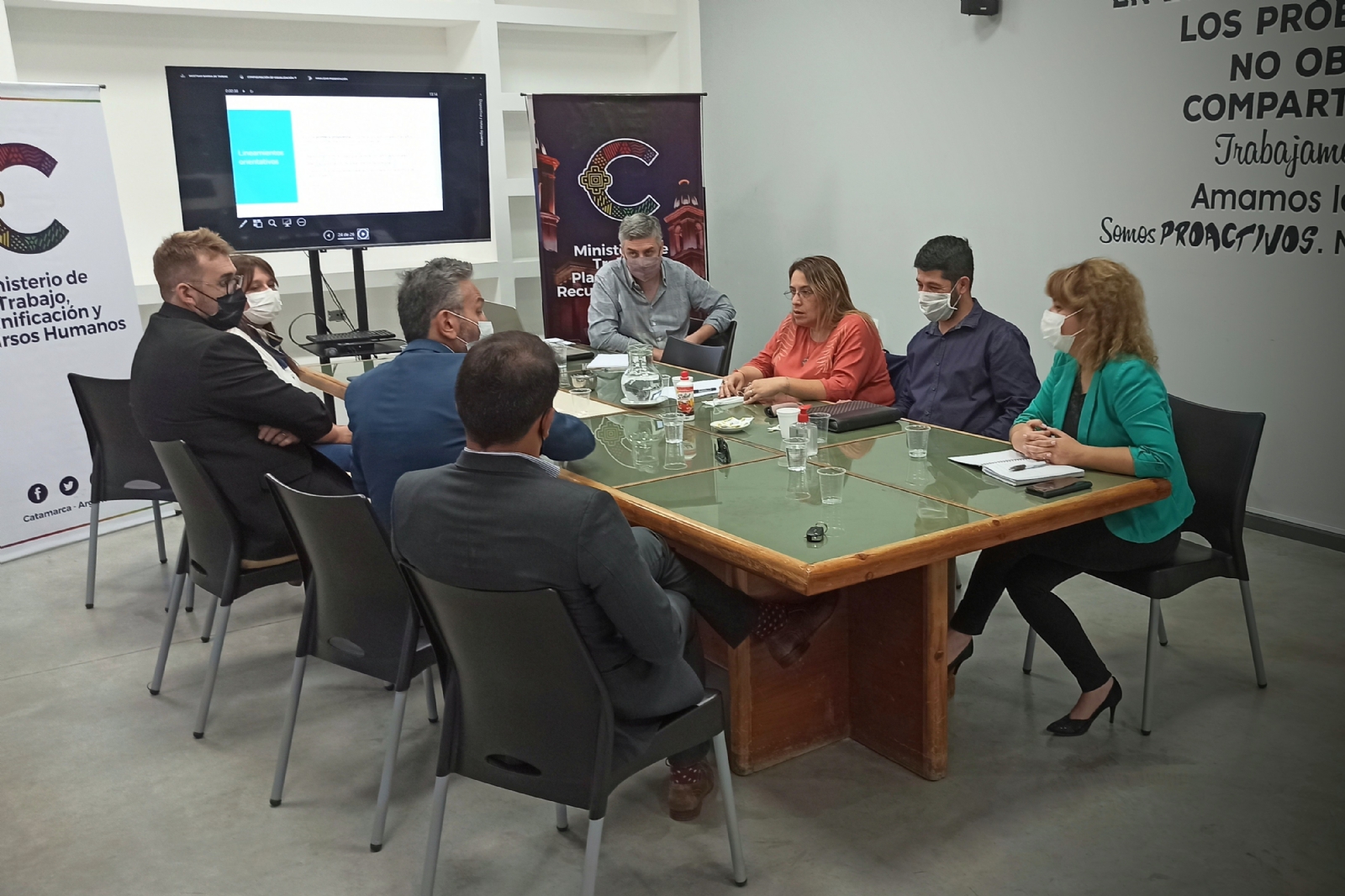 La ministra de Trabajo, Planificación y Recursos Humanos, Verónica Soria, junto a su equipo de trabajo, se reunió con los gremios ATE y UPCN para evaluar en conjunto la situación de los adicionales específicos de la administración pública y avanzar en posibles alternativas de mejoras.