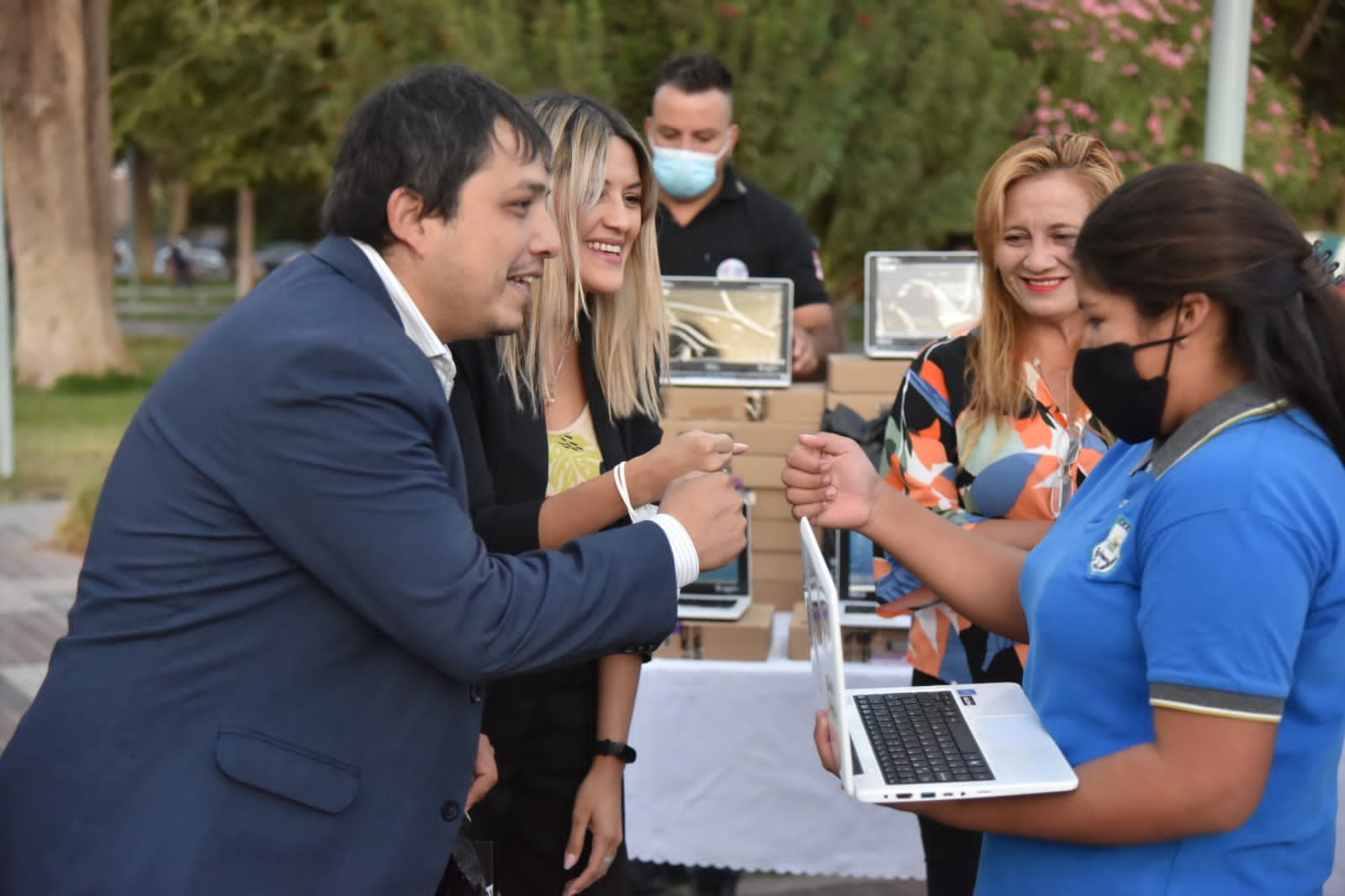 El intendente Sebastián Nóblega junto a la ministra de Educación de la provincia, Andrea Centurión hizo entrega de netbooks del plan "Conectar Igualdad", a los alumnos de las Escuela Rural N° 24 de El Puesto y la escuela N°14 Bernardino Rivadavia y dejaron inaugurado el Punto PROGRESAR.