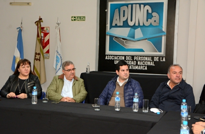 Gladys Moro, Sec General de APUNCa y Delegada CGT Regional Catamarca, recibió al Gobernador de la Provincia Lic. Raúl Jalil junto al Ministro de Gobierno Dr. Jorge Moreno, al Presidente del Directorio de CAPRESCA, Dr Rafael Ponzo Florimonte y a los integrantes de la Agrupación Azul y Blanca "Pedro UTO Carrizo", que forman parte de la CGT.