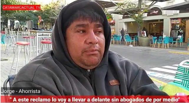 Jorge puso su dinero en Adhemar Capital con la ilusión de poder tener un poco más de tranquilidad económica pero le ocurrió lo contrario. Hoy está más pobre y no vió nada de lo prometido. Es por eso que se sumó junto a su compañero a esta modalidad de reclamo encadenado en Plaza 25 de mayo.