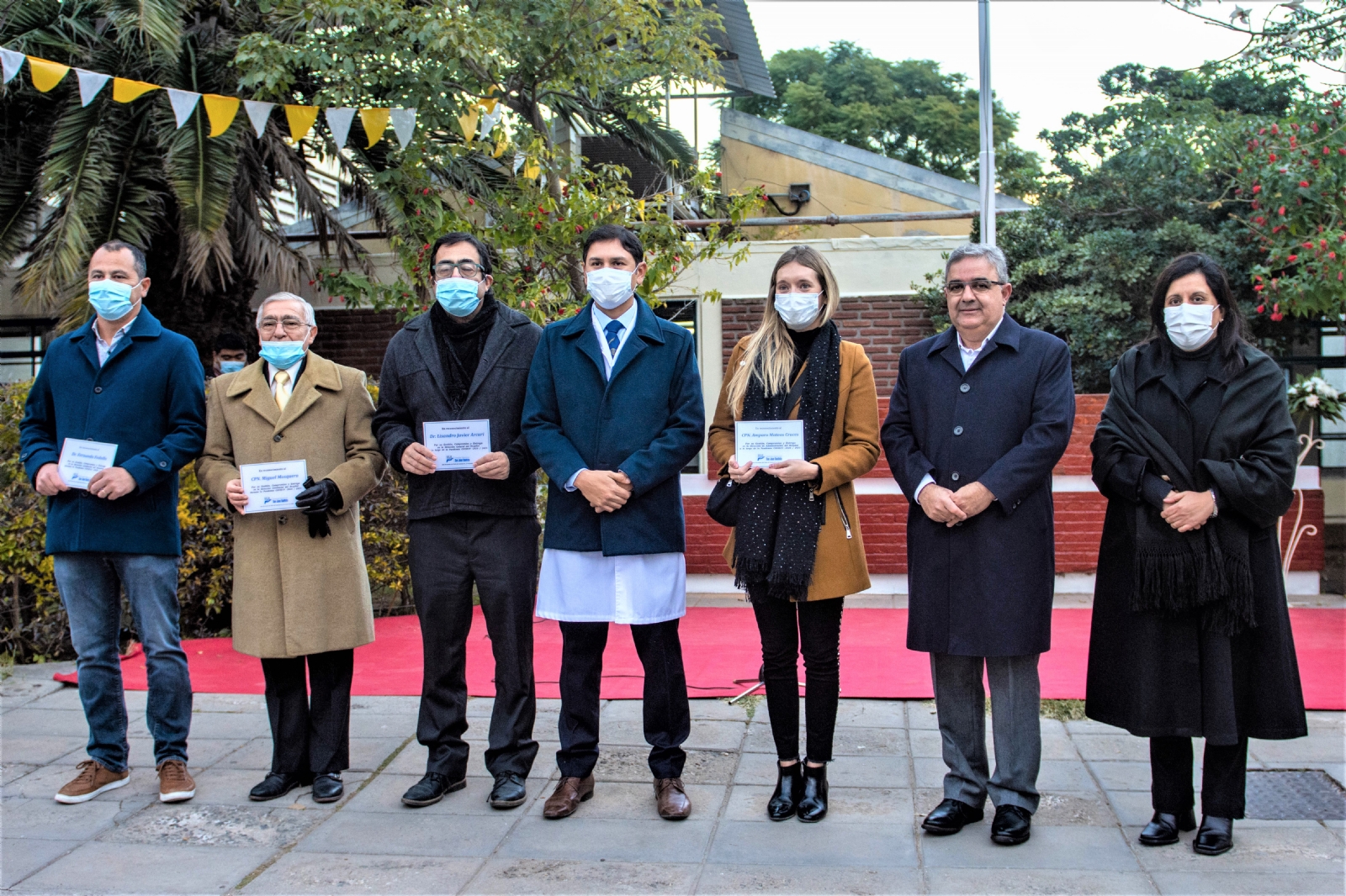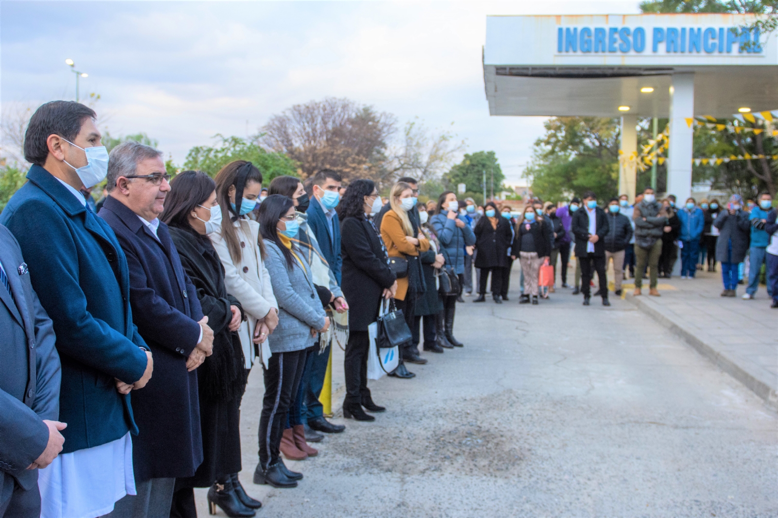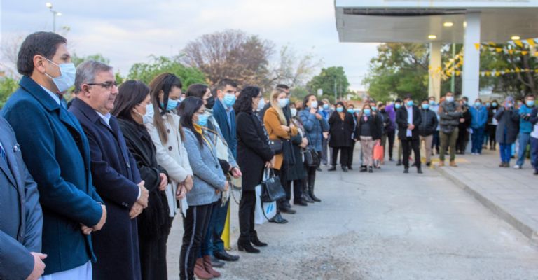En el lugar se procedió al descubrimiento de una placa recordatoria para el personal de salud como homenaje al compromiso profesional y humano que trabajó de manera denodada en la gran lucha contra la pandemia del Covid-19.