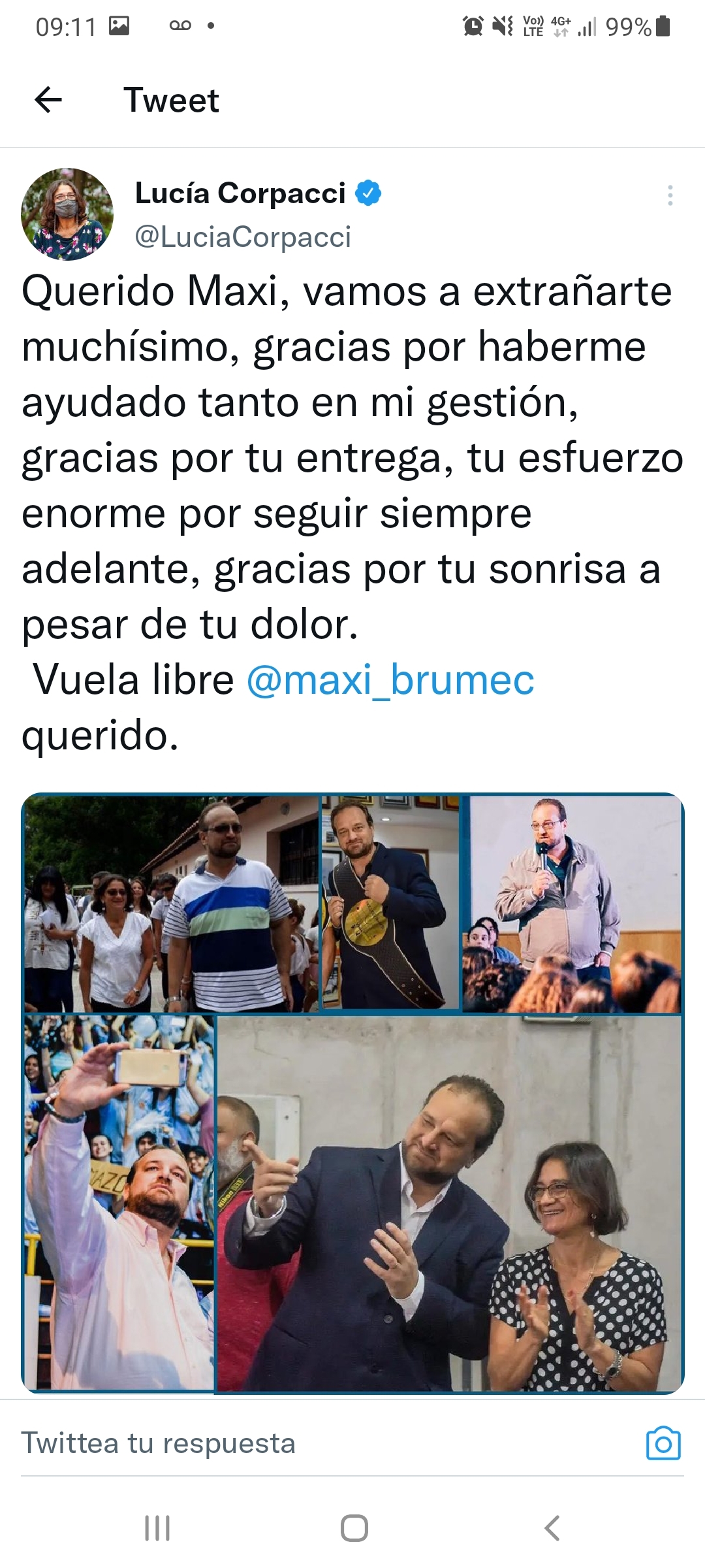 "Querido Maxi, vamos a extrañarte muchísimo, gracias por haberme ayudado tanto en mi gestión, gracias por tu entrega, tu esfuerzo enorme por seguir siempre adelante, gracias por tu sonrisa a pesar de tu dolor.