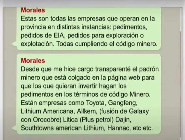 Acto seguido, enumera a todas las empresas mineras que operan en Jujuy y destaca que, desde que asumió como gobernador de Jujuy, "transparentó el padrón minero, que está colgado en la página web".