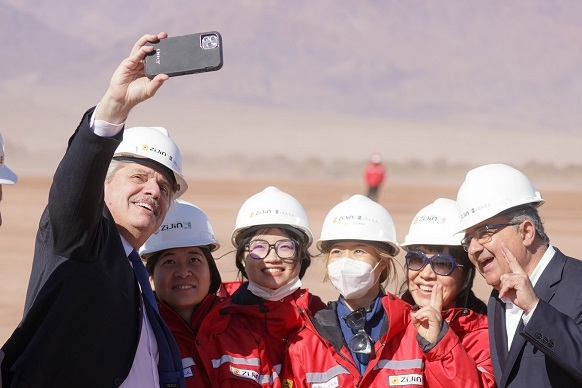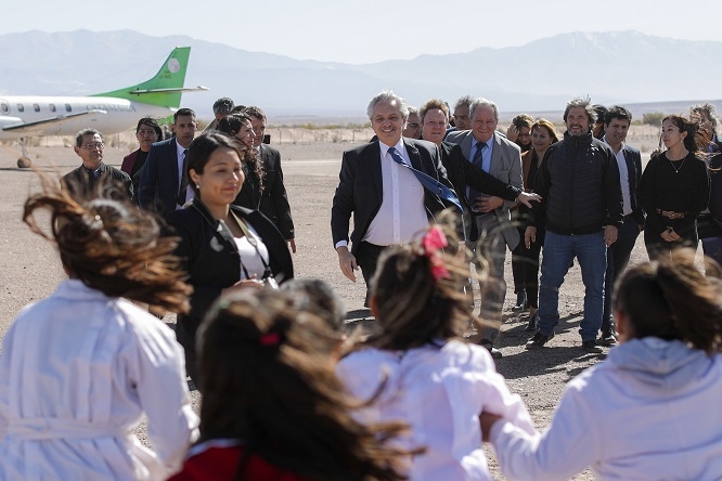 Durante la actividad, acompañaron al jefe de Estado el secretario General de la Presidencia, Julio Vitobello; la portavoz presidencial, Gabriela Cerruti; y el jefe de asesores, Julián Leunda. En Catamarca lo recibieron el vicegobernador provincial, Rubén Dusso; la presidenta de la Cámara de Diputados de La Rioja, María Florencia López; la intendenta de Fiambalá, Roxana Paulón y el titular de la subsidiaria argentina (Linex S.A.), Tomas de Pablos junto a autoridades de la compañía extranjera.