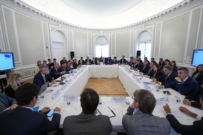 En una de las primeras actividades en suelo norteamericano, en la sede de la Embajada Argentina en Washington, los gobernadores se reunieron con las principales “Think Tanks” de Estados Unidos para hablar sobre el potencial del Norte Grande en la relación bilateral en cuanto a minería, sectores productivos, reconversión eléctrica, entre otros rubros.