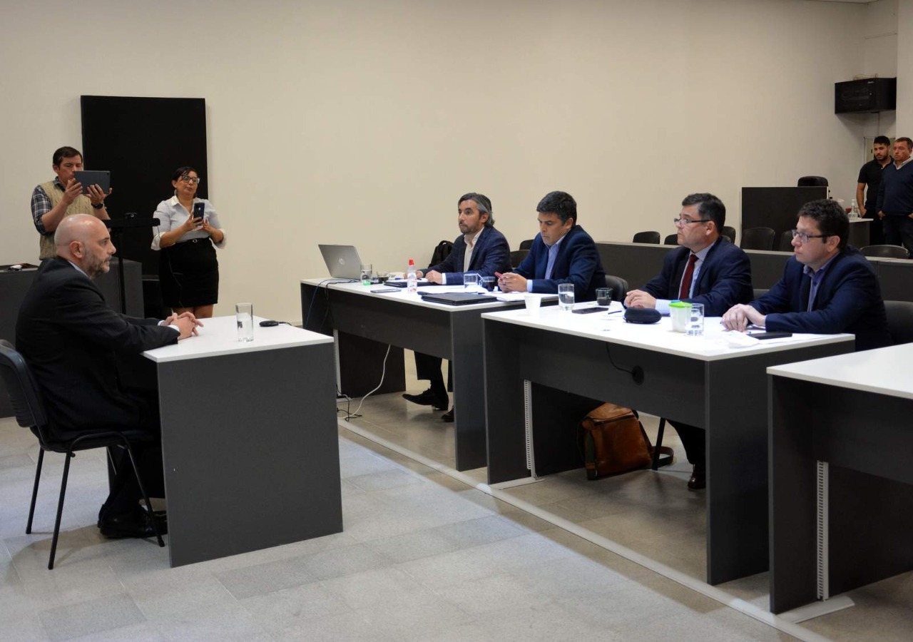 Los comisionados Gonzalo Salerno, presidente de la Comisión y decano de la Facultad de Derecho; Nicolás Rosales Matienzo, asesor General de Gobierno; Jorge Palacios, vicepresidente de la Asociación de Magistrados y Funcionarios del Poder Judicial, y Alexis Russo, presidente del Colegio de Abogados, preguntaron sobre valores y ética en el ejercicio de la magistratura, planificación judicial, perspectiva de género y Derechos Humanos.